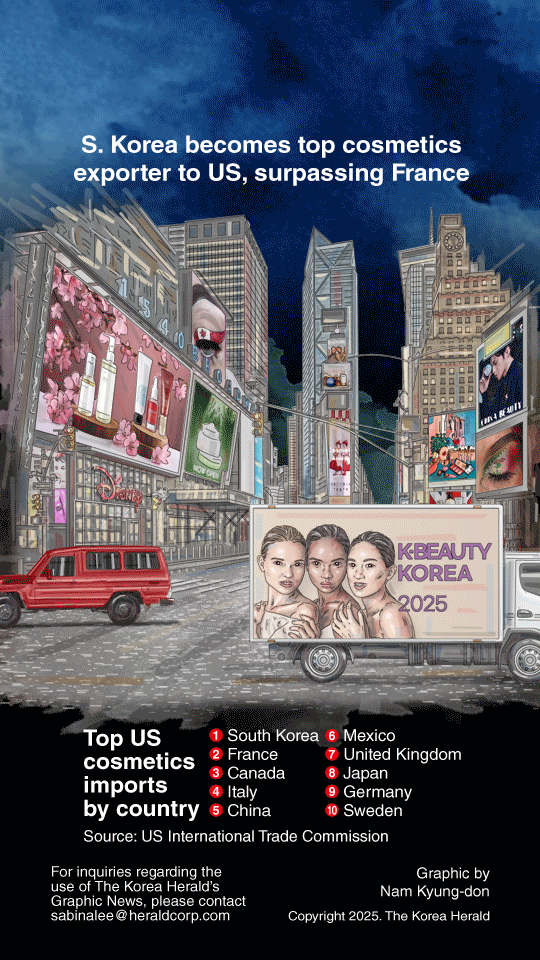 South Korea became the leading cosmetics exporter to the United States last year, overtaking France for the first time as global demand for Korean beauty products continues to grow.